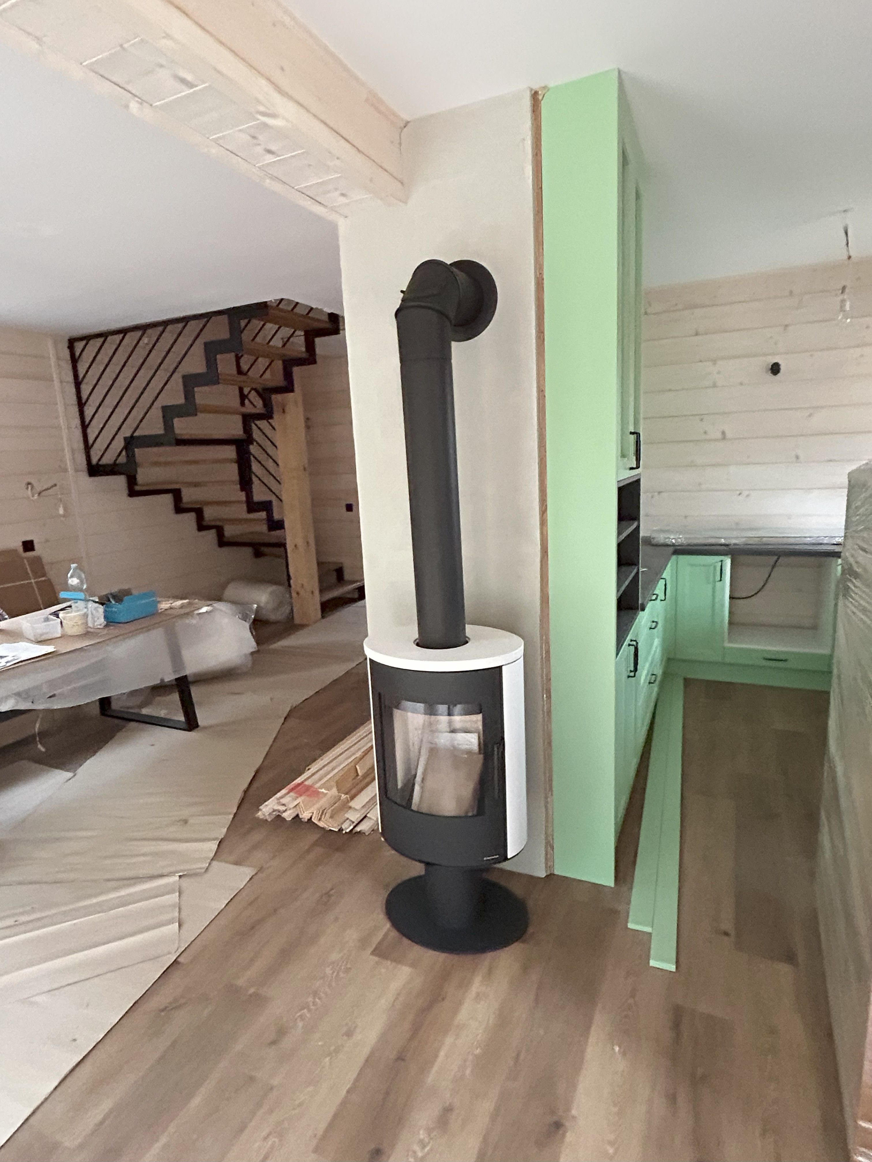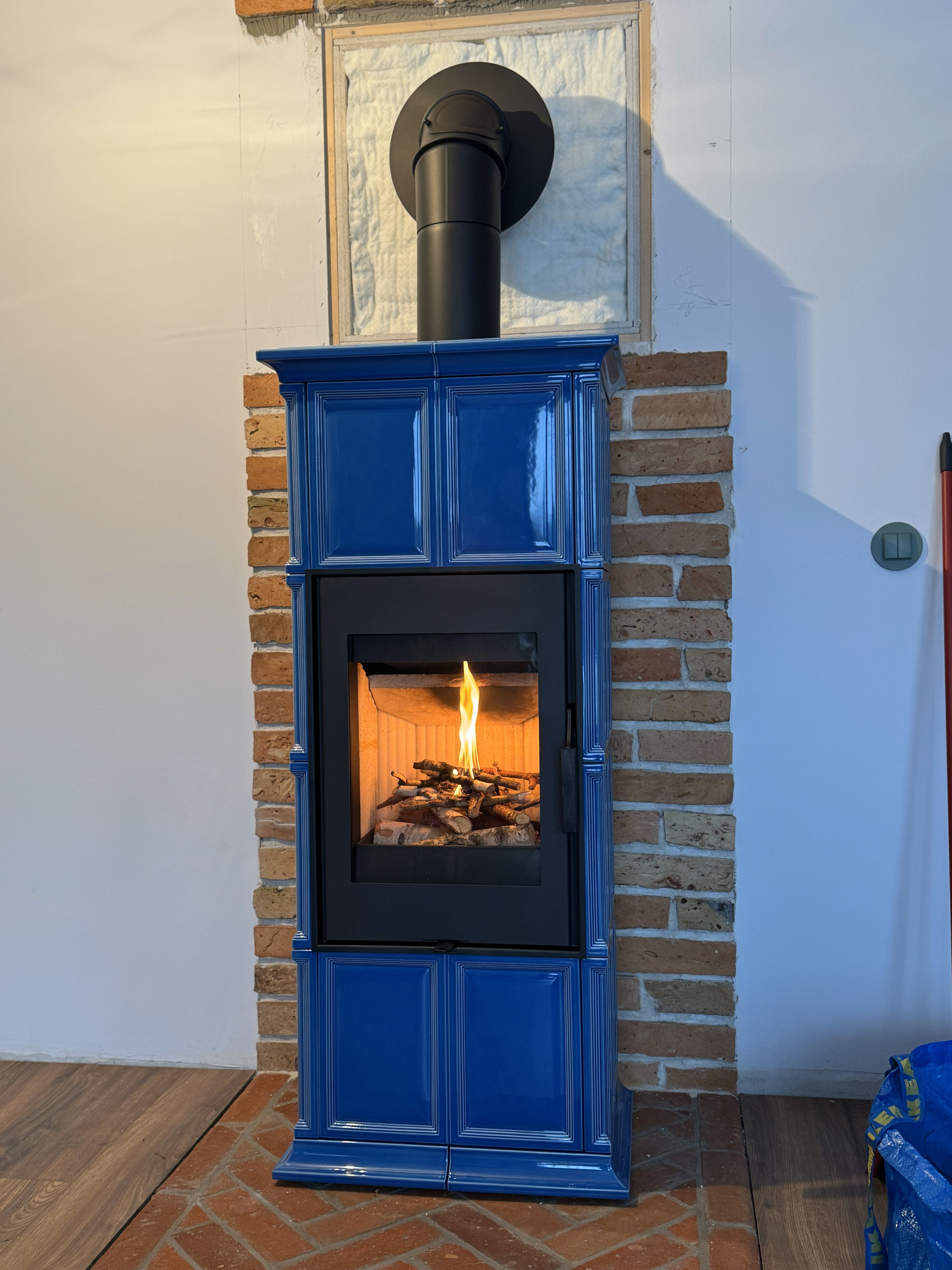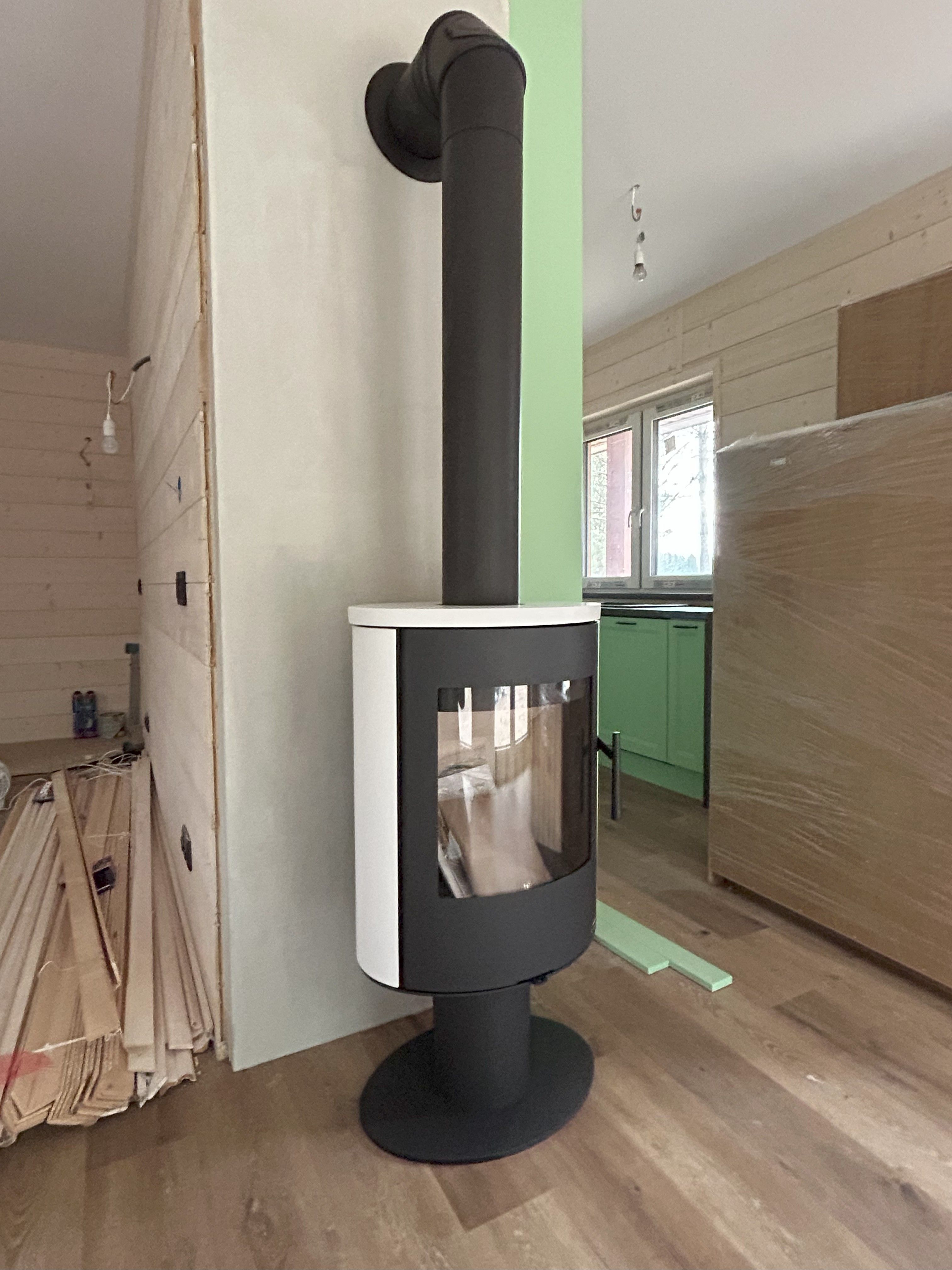 - Przewód kominowy dobrany do mocy wkładu (Ø 160–200 mm, min. 6 m wysokości, zgodny z normami PN-EN 1457 / 1856).